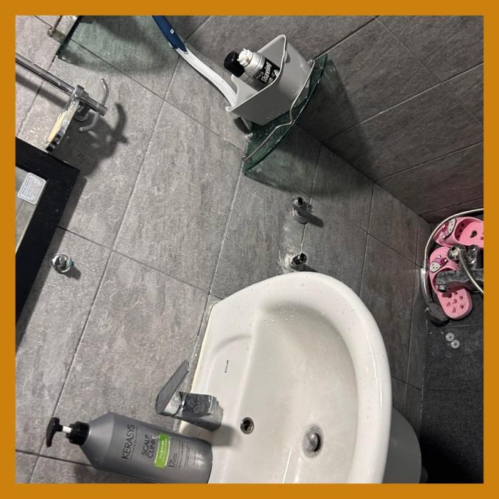 화장실 벽면 굴착 및 손상된 배관 교체 작업