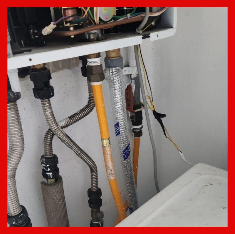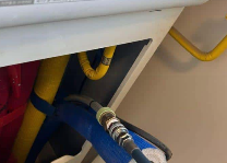 보일러실로 이동하여 배관의 공압 테스트(Pneumatic Test)를 진행했습니다. 직수, 온수, 난방 배관을 각각 분리한 후 컴프레서를 이용해 배관 내부에 공기 압력을 주입했습니다.
